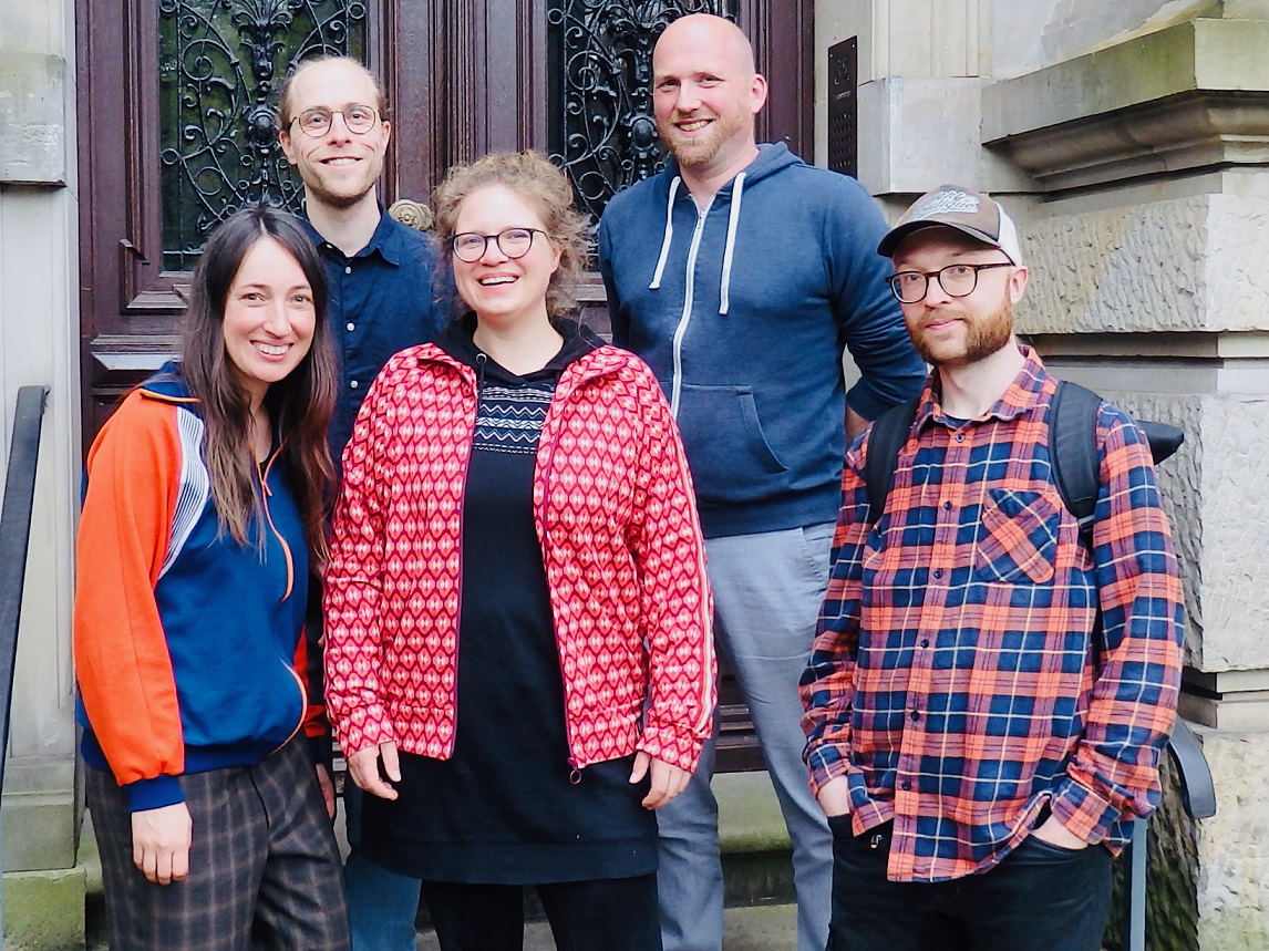 Die fünf Autor*innen Mire Buthmann, Gesche Gloystein, Arne Lentföhr, Nikos Saul und G. A. Beckmann arbeiten bereits seit 2023 an einem Lyrikprojekt, dessen Ergebnisse sie nun gemeinsam der Öffentlichkeit präsentieren. Jeden Monat schreiben sie jeweils ein Gedicht zu gemeinsam festgelegten Themen wie „Flünken“ (Flügel), „Marschland“ oder „Akustik“.